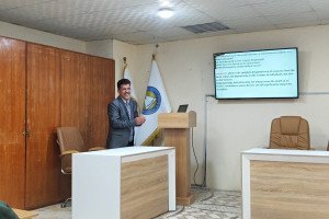 Dr. Abed Al- Kathem Naser has presented a seminar titled "the rules and design foundations of public and homes gardens" that hold in Horticulture and Landscape department at Agriculture College. Dr. Naser has explained in detail the followed systems of garden design including Agriculture college gardens as well as the importance of public gardens (parks) for urban cities. Also, he recommended in his seminar to expand the green area in Basrah city and increase the park's number by following the known design foundations of public gardens in the world.
