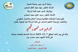 The College of Agriculture at the University of Basrah, Department of Field Crops, organized a workshop on the use of the clean farming method in food production and the cultivation of the cycloronia plant. The workshop aimed to introduce the cycloronia plant, its importance and areas of use Learn about clean farming methods, their importance, and the methods used in their application The workshop, which was attended by Dr. Khawla Daoud Kateh and Assistant Professor Rawafed Hadi Al-Obaidi, included the first axis addressing how to use modern methods in agriculture and avoiding pesticides and chemical fertilizers in food production The second axis is throwing a flash on the cyclornia plant, which is one of the salt-tolerant plants that can be used as a source of oil in addition to its other uses. The workshop recommended the need to move away from the traditional farming method and replace it with safe alternatives such as organic fertilizers and bio fertilizers for the purpose of reducing the negative effects of residual fertilizers and chemicals and their damage to human health. And the experience of cultivating the cycloronia plant due to its importance and the appropriateness of our environmental conditions for its cultivation and propagation.
