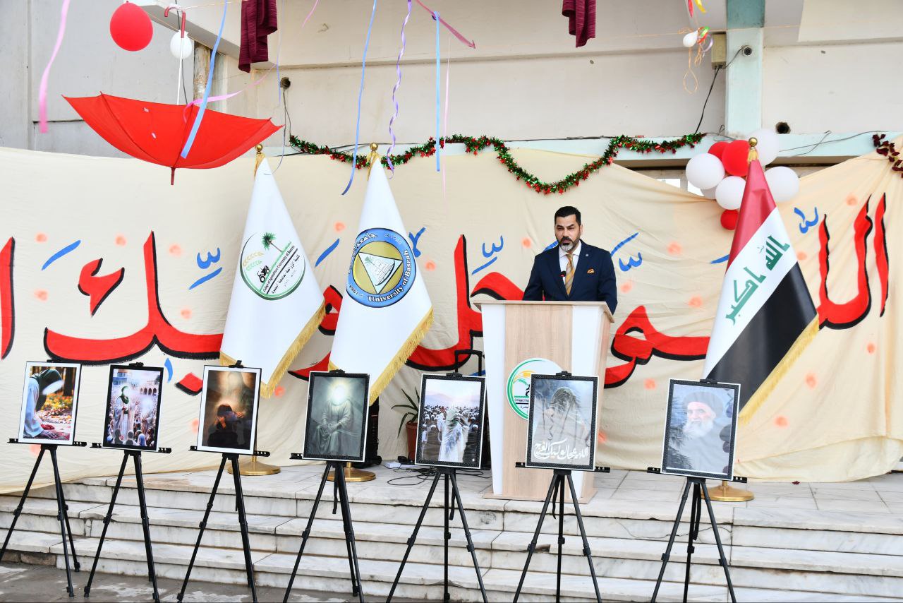 The celebration included the Dean honoring a group of female students who wear the hijab, in recognition of their commitment to noble Islamic values and a dignified cultural identity within the university campus. He affirmed that this honor serves to encourage female students to adhere to the Fatimid approach and emulate the noble example of the Ahlulbayt (peace be upon them). Roses and sweets were distributed, and speeches and poems were recited expressing love for the Ahlulbayt (peace be upon them), amidst prayers that God protect Iraq and its people, and that these occasions bring further blessings and prosperity to the educational journey.