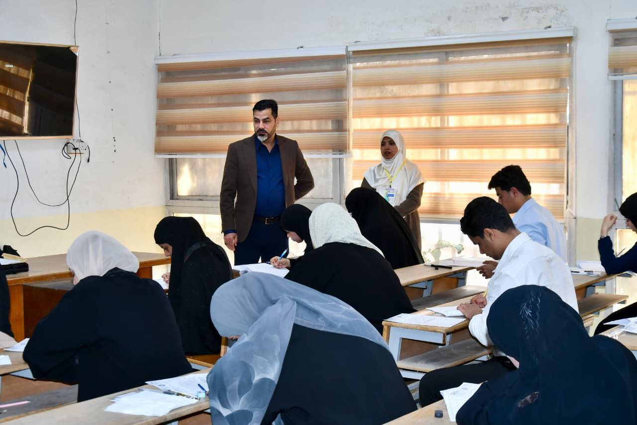 The Dean of the College of Agriculture at the University of Basra, Professor Dr. Sarmad Ghazi Mohammed Al-Shawi, and the Assistant Dean for Scientific Affairs, Professor Dr. Sadiq Jabbar Mohsen, conducted an inspection tour to monitor the progress of the final examinations for the first semester for first-year undergraduate students. The purpose of the tour was to directly observe the examination environment and the logistical services provided to the students.